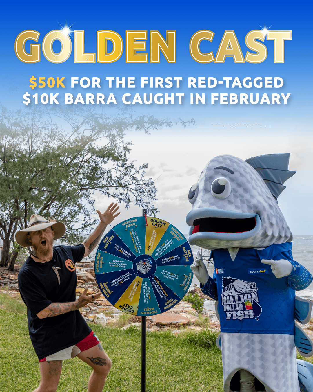 Golden Cast means the first lucky fisho to reel in a Season 11 tagged $10k barra in February will take home a massive $50k prize!