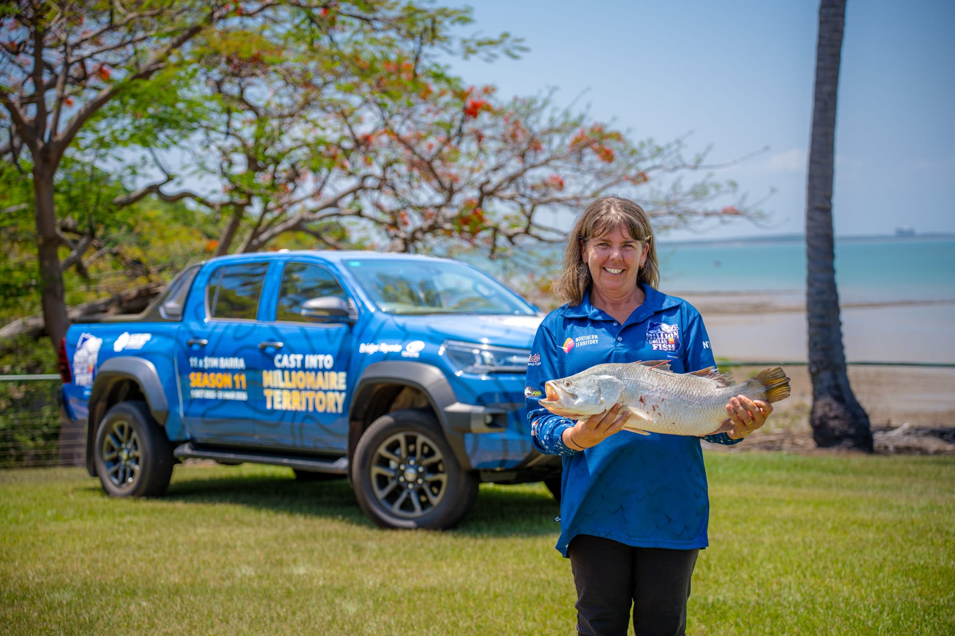 Queensland visitor Kimberley Heming has become the first interstate winner of Season 11 of the Million Dollar Fish competition, reeling in the seventh red-tagged $10,000 barramundi of the season.